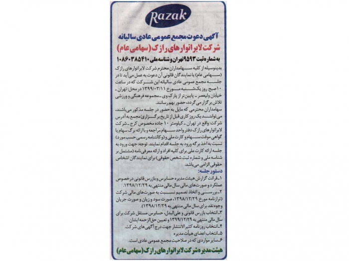 بدینوسیله مفتخریم اعلام نماییم آزمایشگاه کنترل شرکت لابراتورهای رازک موفق به تمدید پروانه بهره برداری آزمایشگاه مجاز تولیدی ( آکرودیته ) به مدت یکسال گردید . ادامه مطلبهفدهمین کنگره پزشکان عمومی با حضور شرکت داروسازی رازک