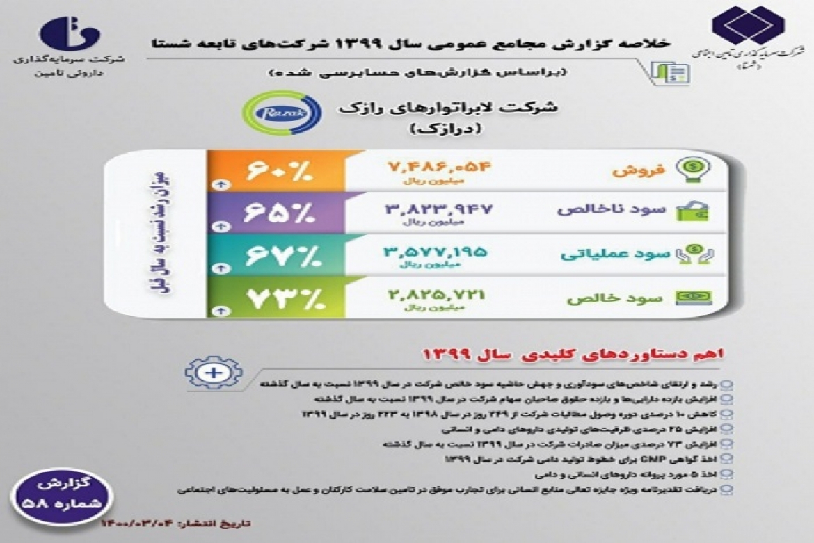 خلاصه گزارش مجامع عمومی سال 1399 شرکت های تابعه شستا - RazakPharma.com